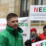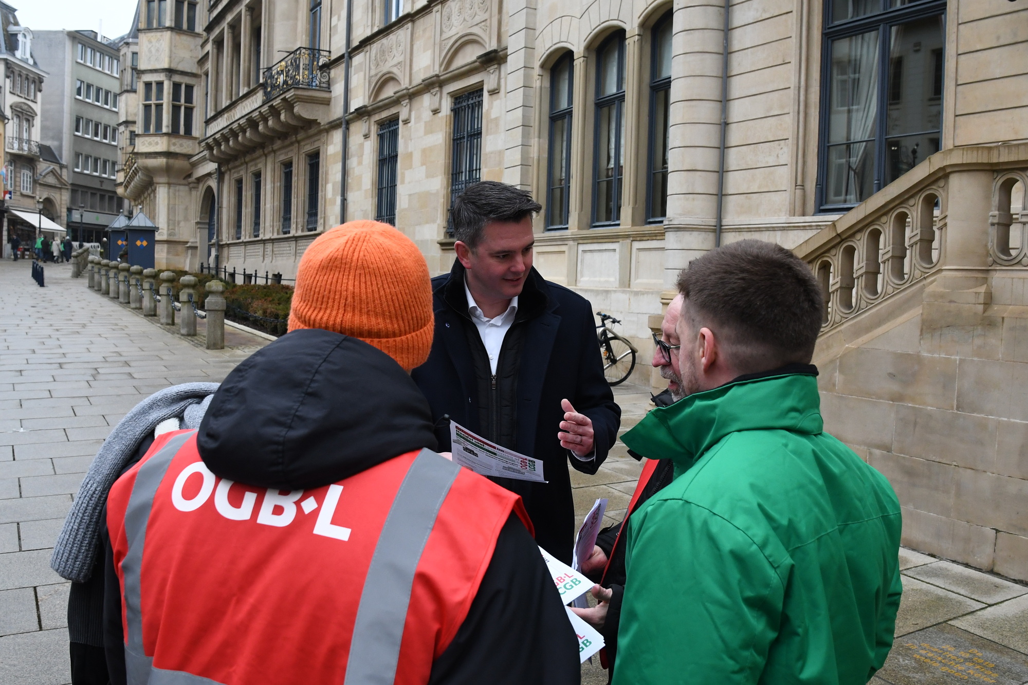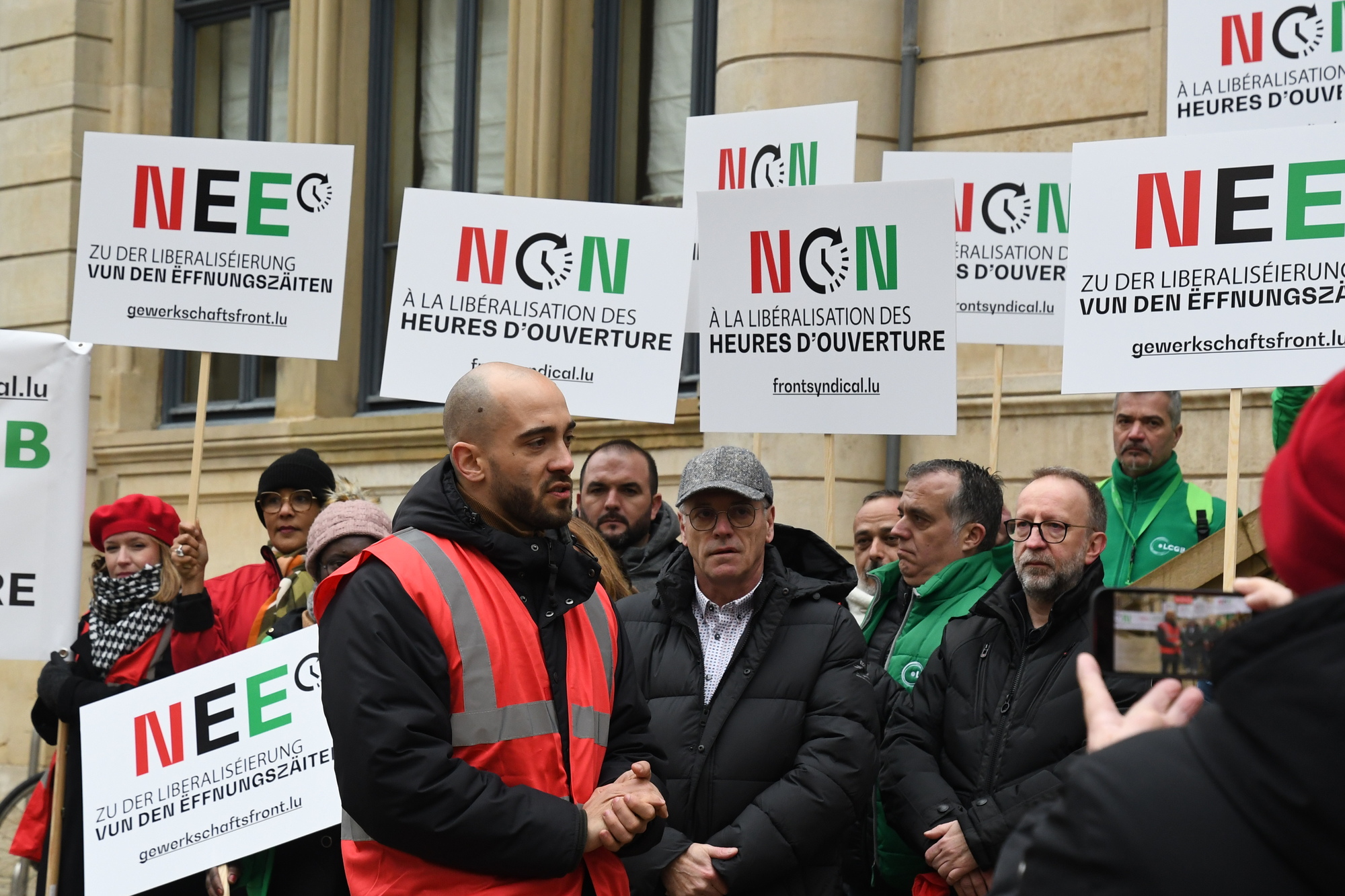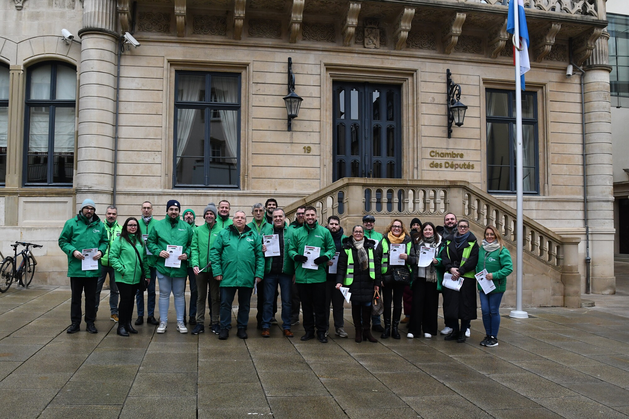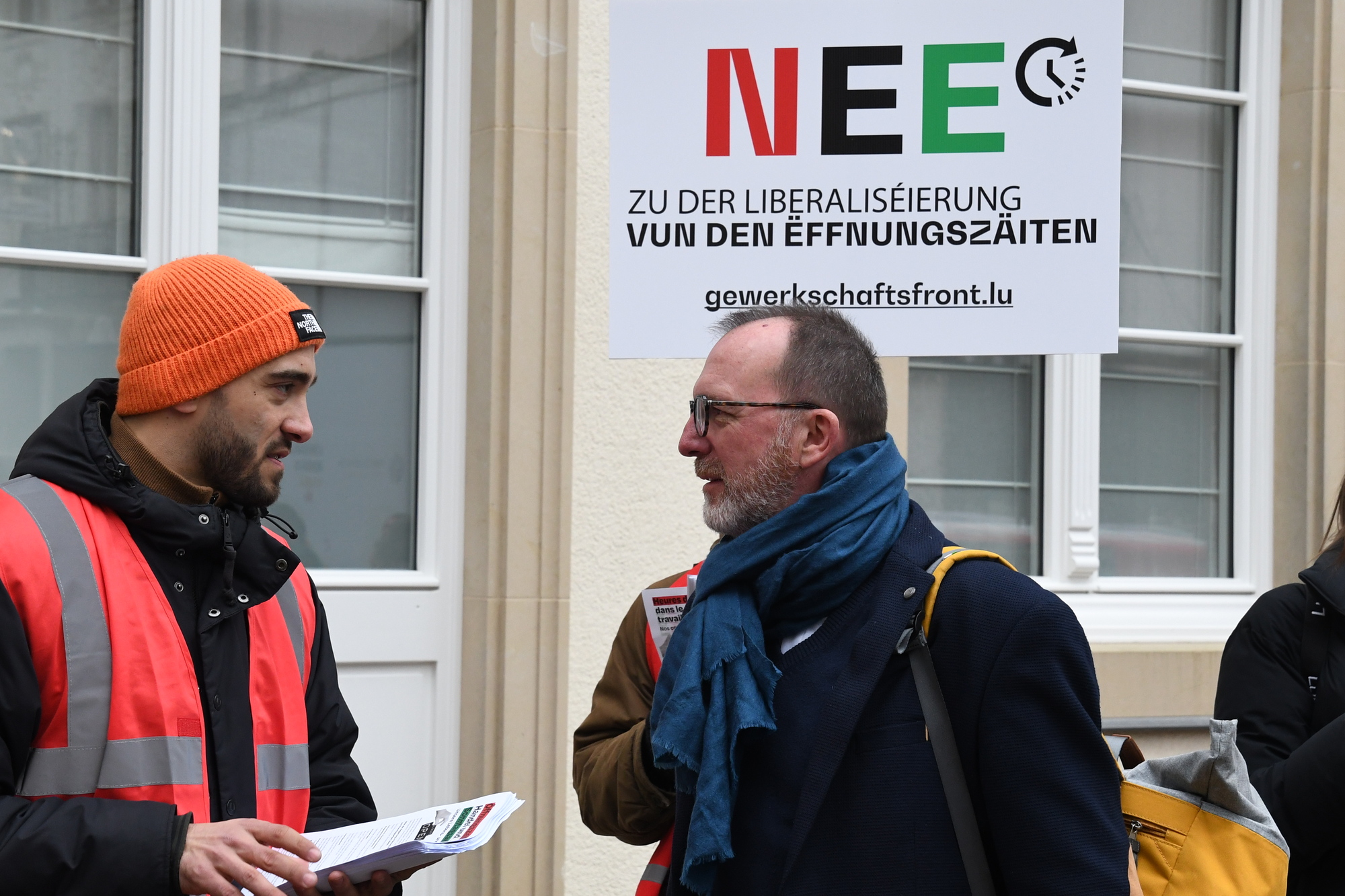 Heute fand vor der Abgeordnetenkammer eine Sensibilisierungsaktion über die geplante totale Liberalisierung der Öffnungszeiten im Handel statt. Insbesondere sollten die Mitglieder der Arbeitskommission auf die Forderungen der Gewerkschaften aufmerksam gemacht werden.