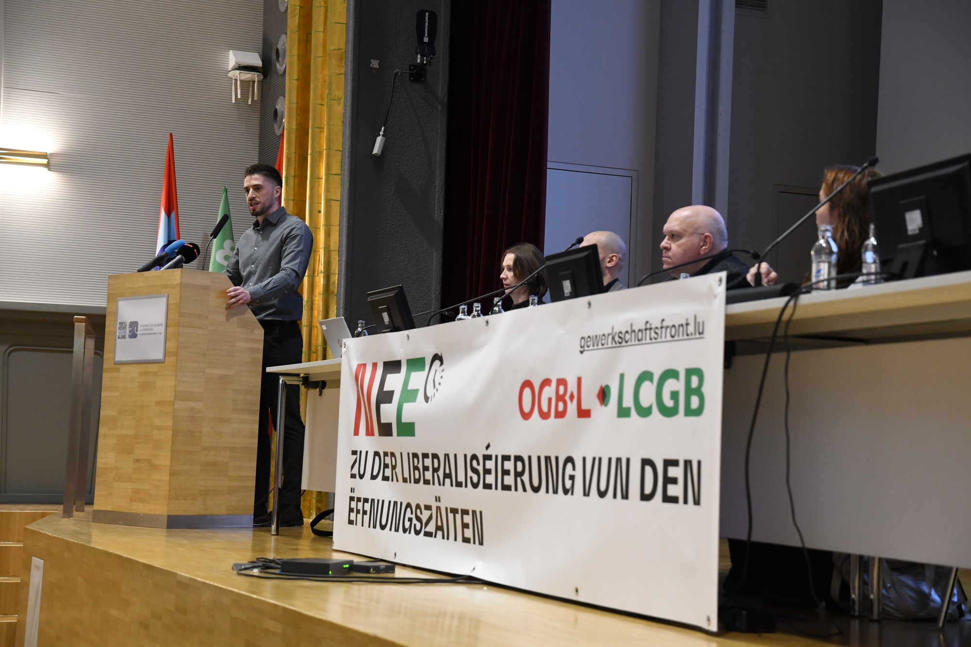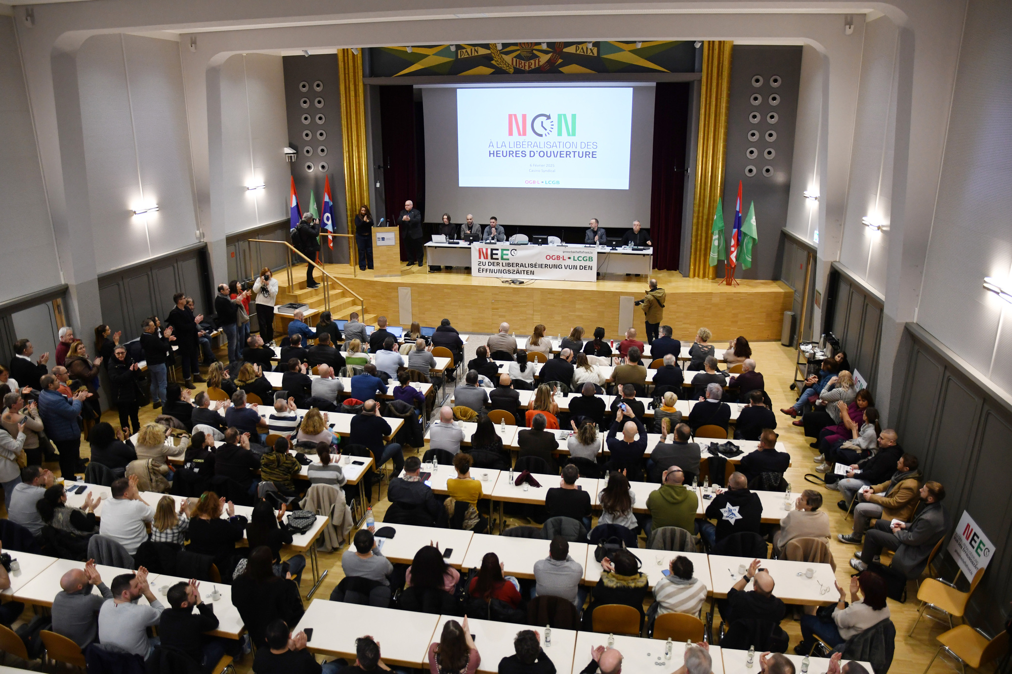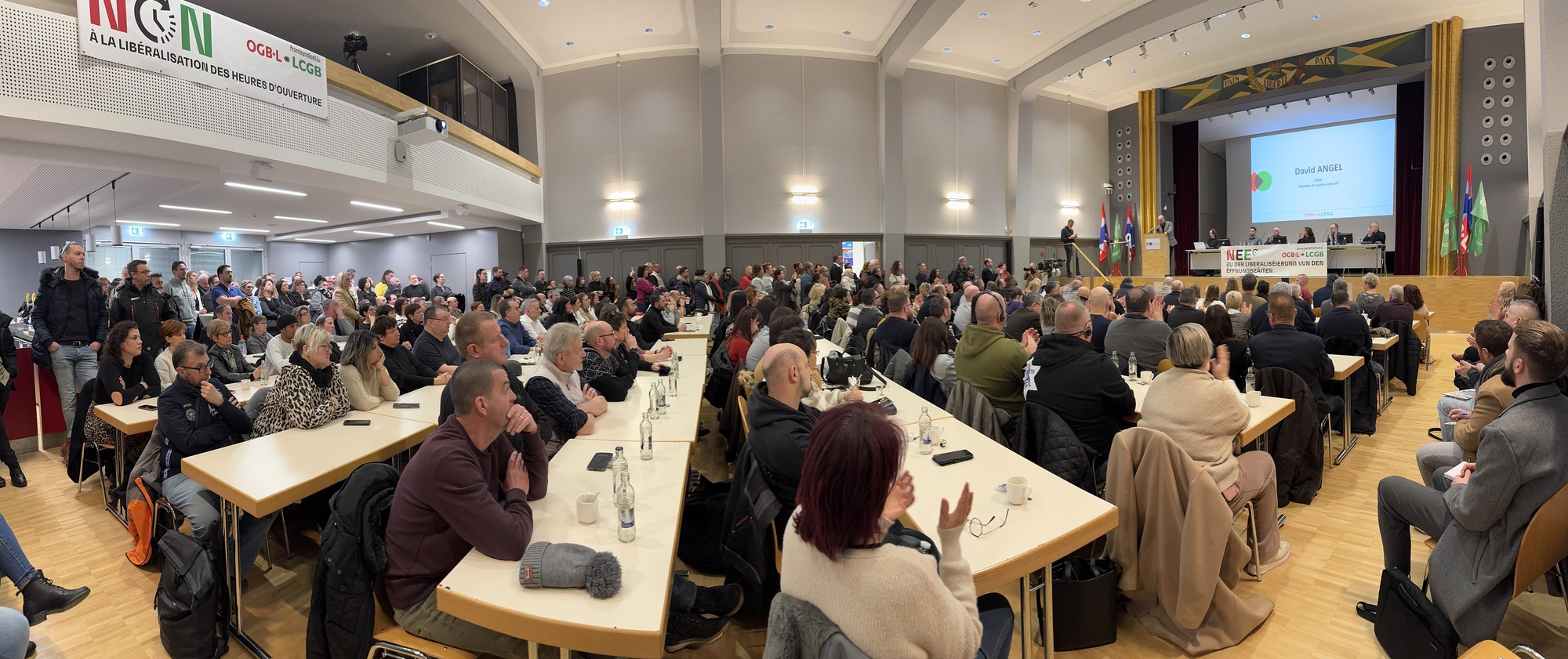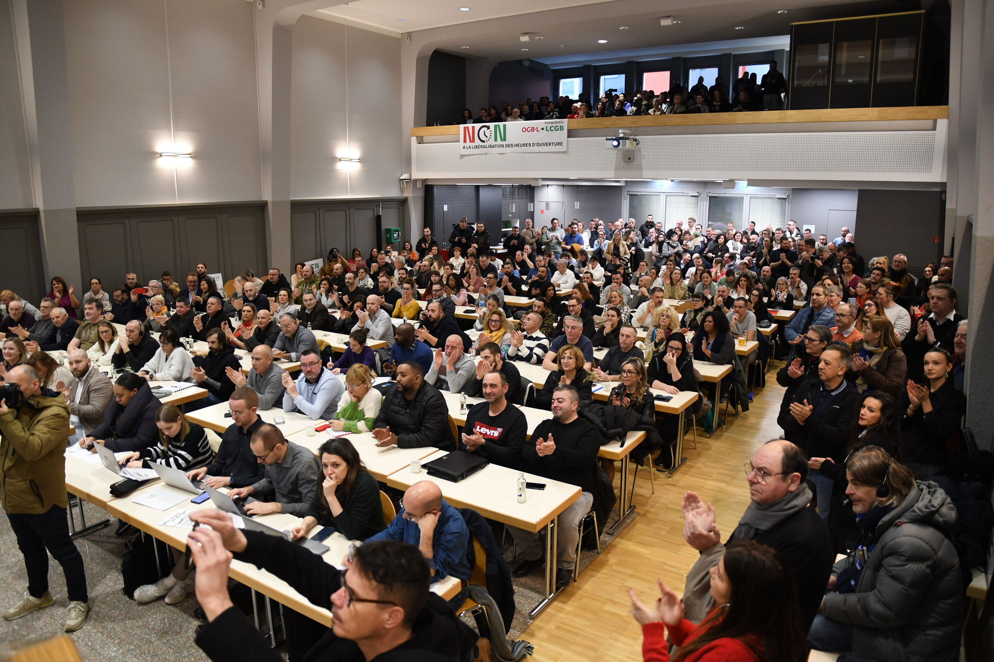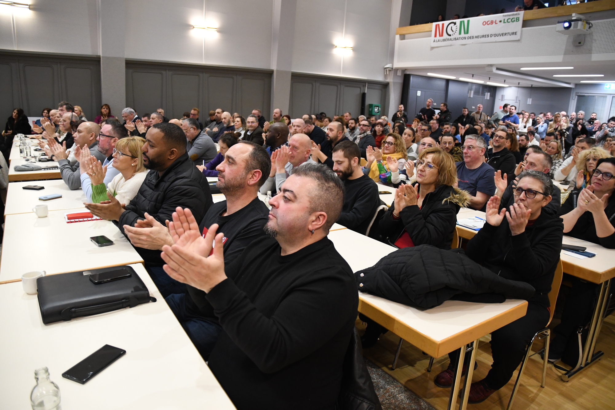 Heute kamen mehr als 360 Gewerkschaftsdelegierte im „Casino syndical“ in Bonnevoie zusammen, um über den Angriff der Regierung auf die Lebens- und Arbeitsbedingungen der Arbeitnehmer im Handel zu diskutieren