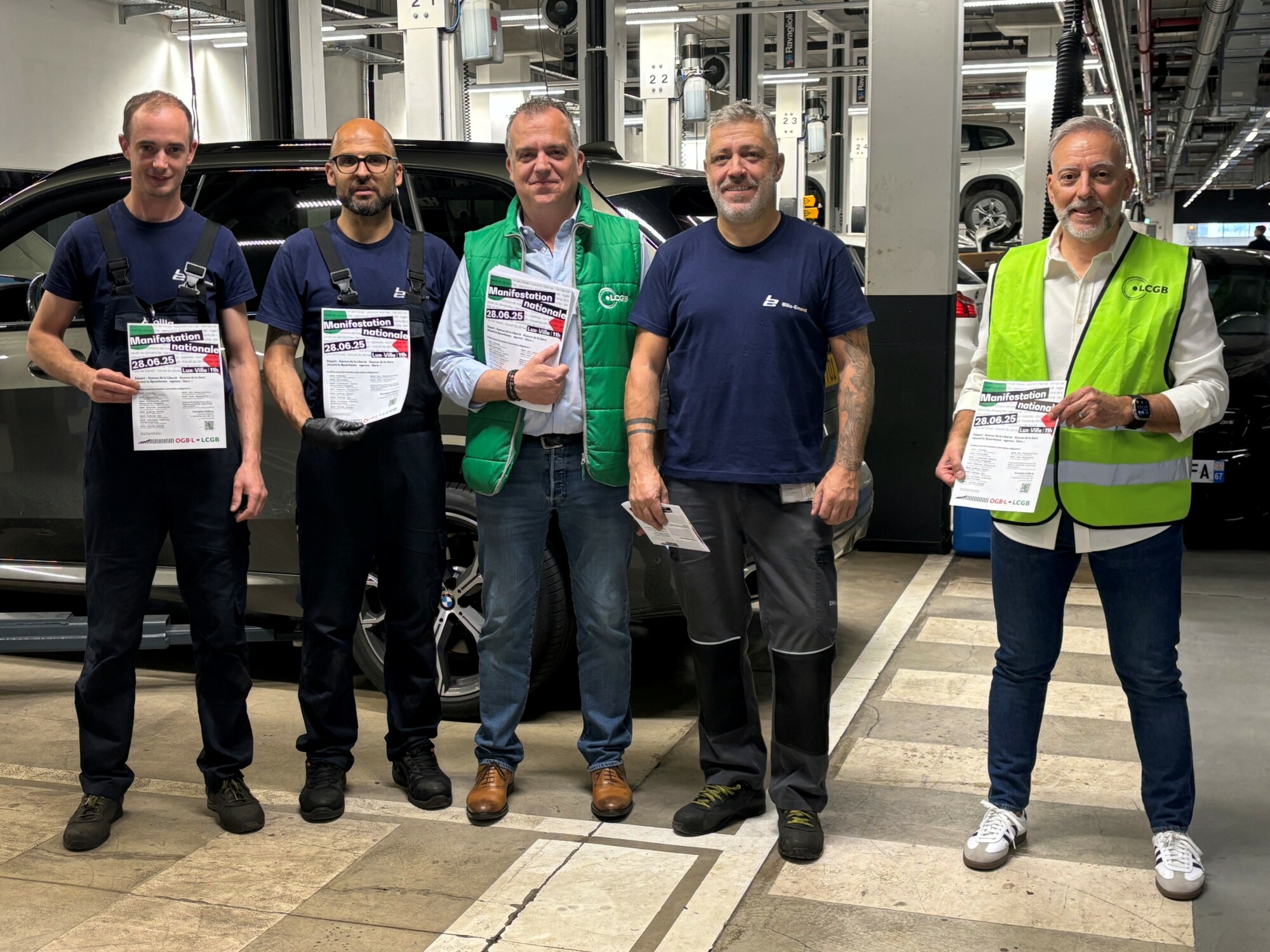 Der LCGB war bei den Arbeitnehmern der Garagen Louyet, Bilia Luxembourg, AutoFabrik und Auto Carrosserie vor Ort, um sie für die große nationale Demonstration zu mobilisieren. Die Beschäftigten zeigten sich solidarisch im Kampf gegen die Verschlechterung des Rentensystems und der Kollektivverträge.