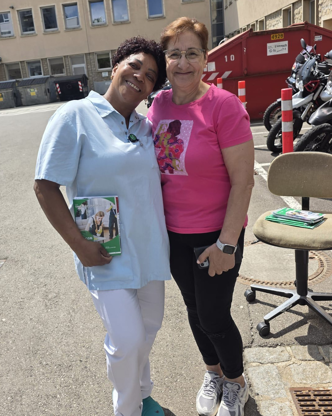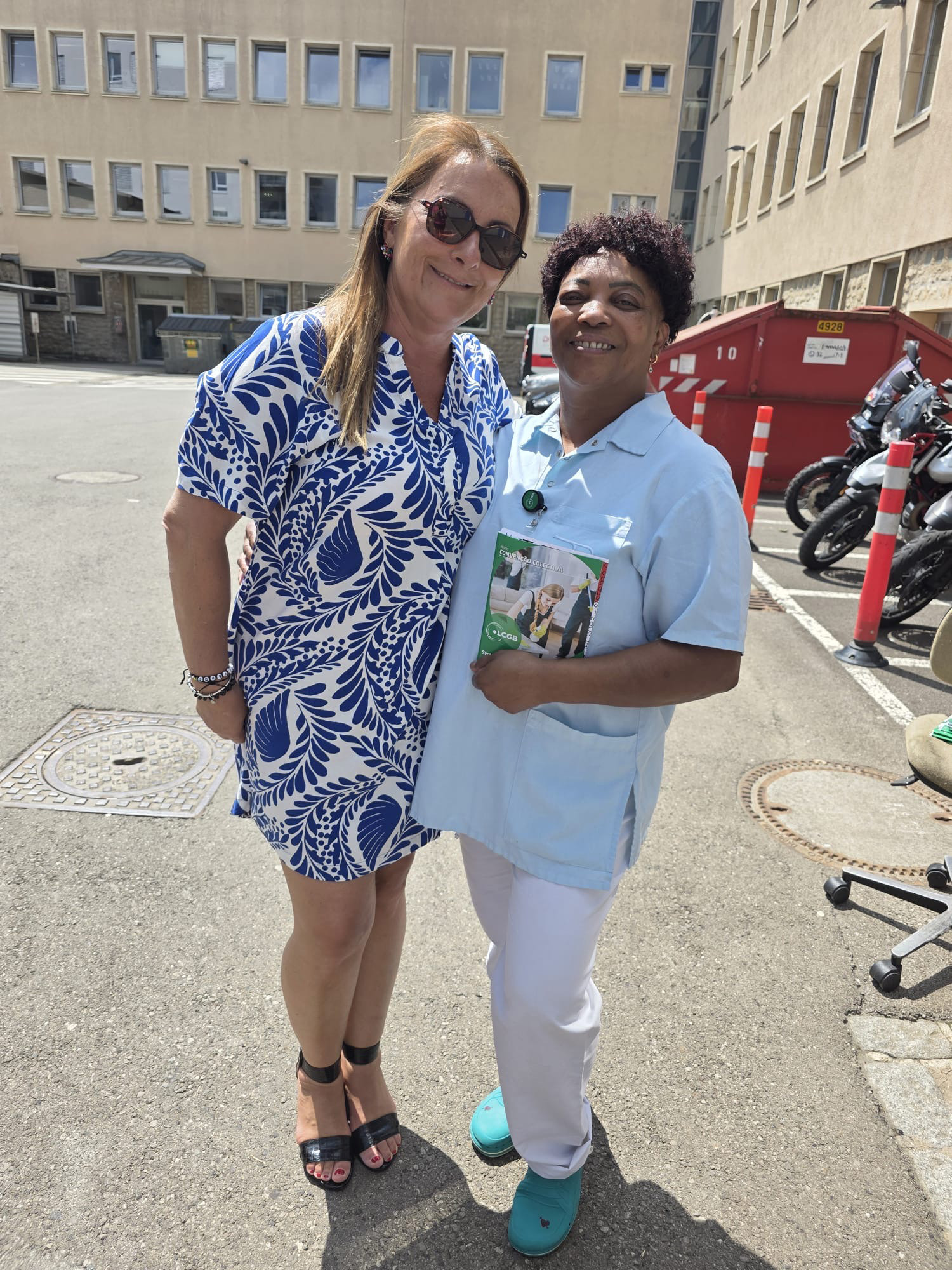 Die Dussmann-Delegierten besuchten das CHL und waren in Strassen, um den Kollektivvertrag für den Reinigungssektor an das Reinigungspersonal zu verteilen. Sie nutzten die Gelegenheit, um die Beschäftigten auf die Wichtigkeit der großen nationalen Demonstration am 28. Juni aufmerksam zu machen.
