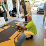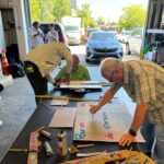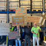 Die Mitglieder des LCGB und des OGBL aus dem Gesundheitssektor haben sich in einer gemütlichen Atmosphäre getroffen, um die Plakate für die große Demonstration am 28. Juni vorzubereiten.