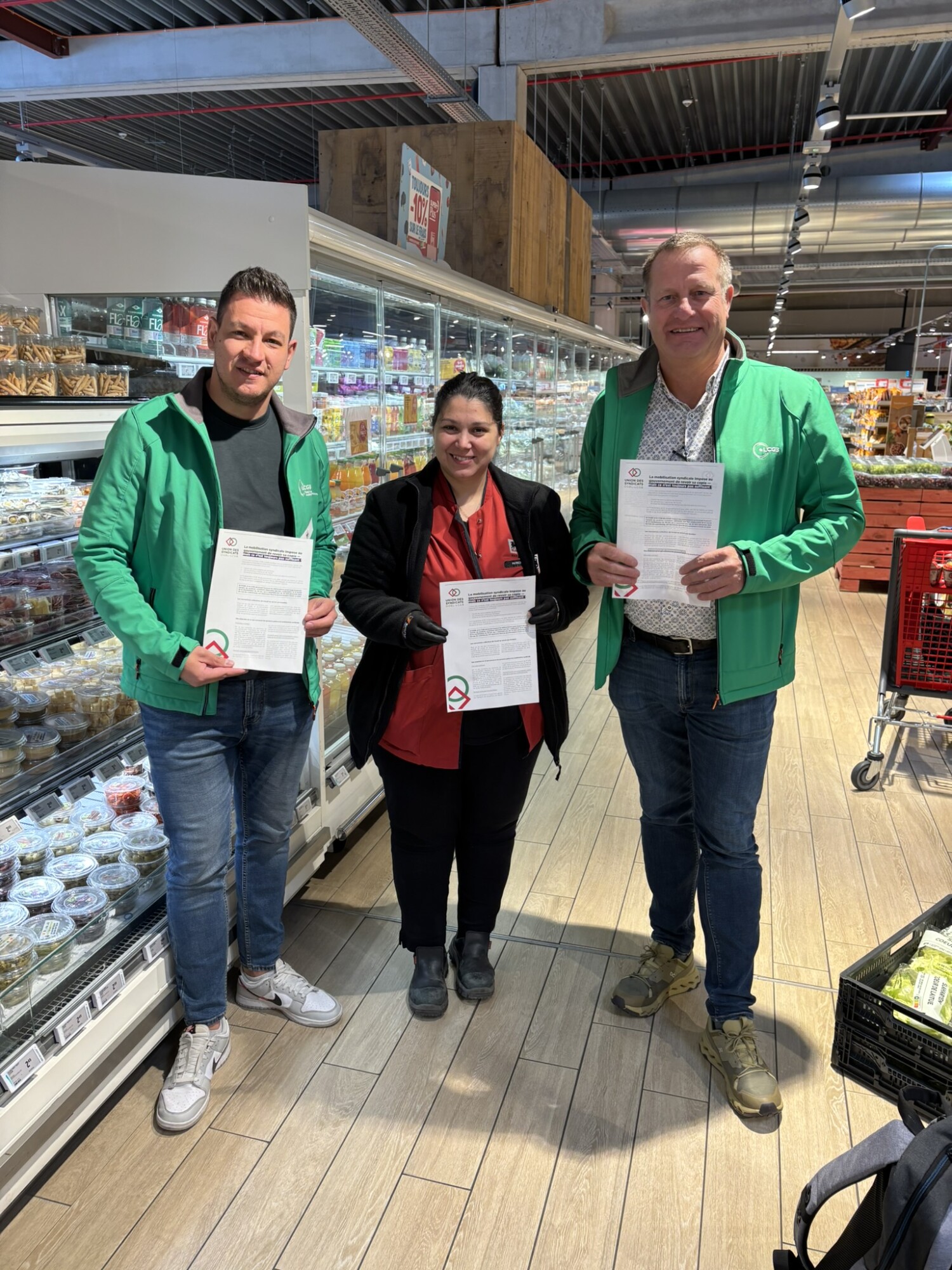 Bei einem Rundgang durch die Geschäfte von HiFi und Delhaize tauschten sich der stellvertretende Gewerkschaftssekretär und die Delegierten des LCGB mit den Beschäftigten über die Ergebnisse der letzten Sozialrunden mit der Regierung aus.