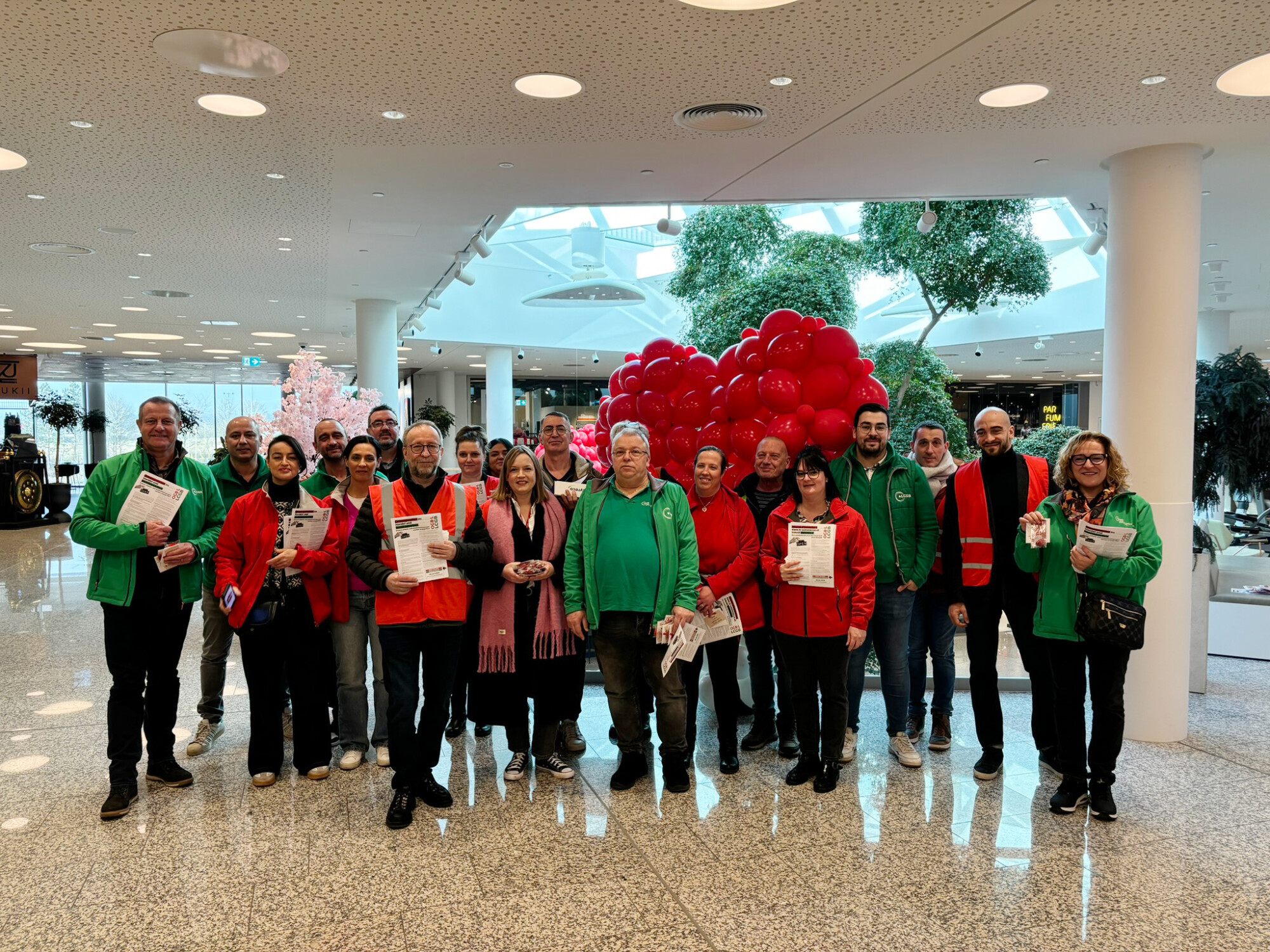 Aujourd’hui, jour de la Saint-Valentin, une grande action de distribution a eu lieu pour attirer l’attention sur l’attaque du gouvernement contre les conditions de vie et de travail des salariés du commerce.