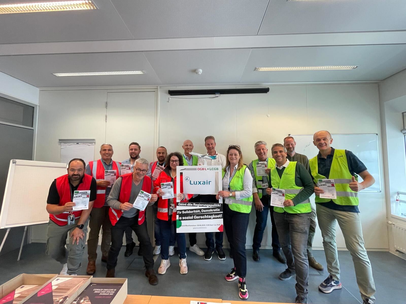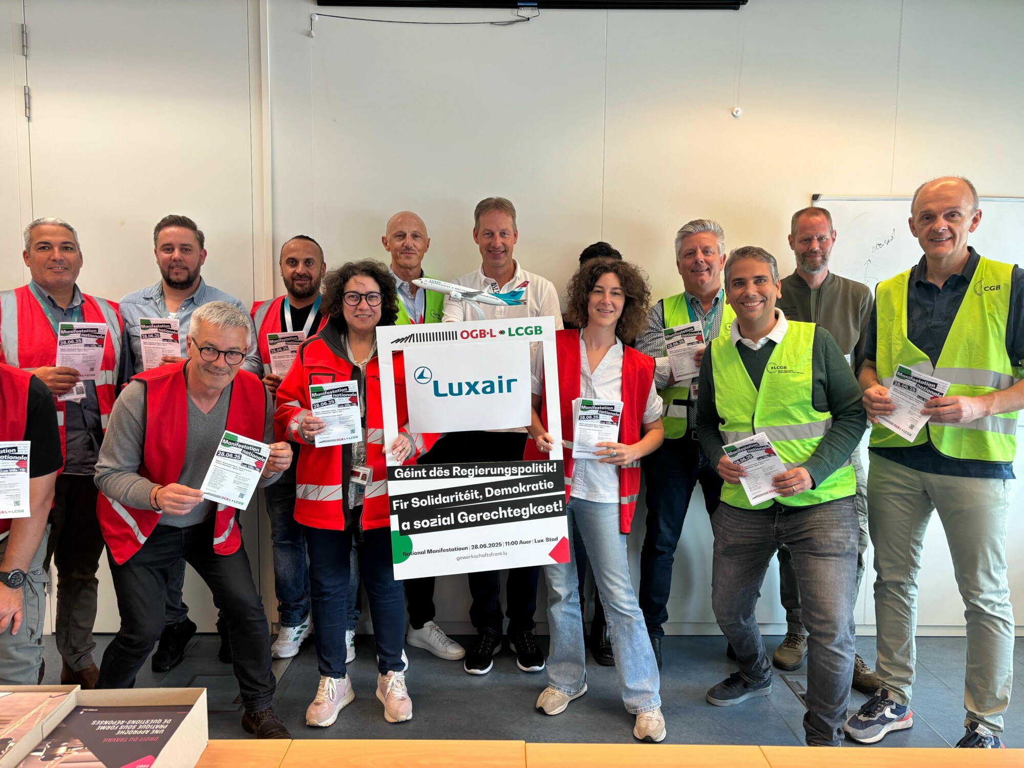 Les salariés de Luxair ont été mobilisés pour la grande manifestation nationale qui se tiendra le 28 juin à Luxembourg-Ville. Les employés ont manifesté leur solidarité dans la lutte contre la détérioration du système de pension et des conventions collectives. Vous aussi, participez à la manifestation.