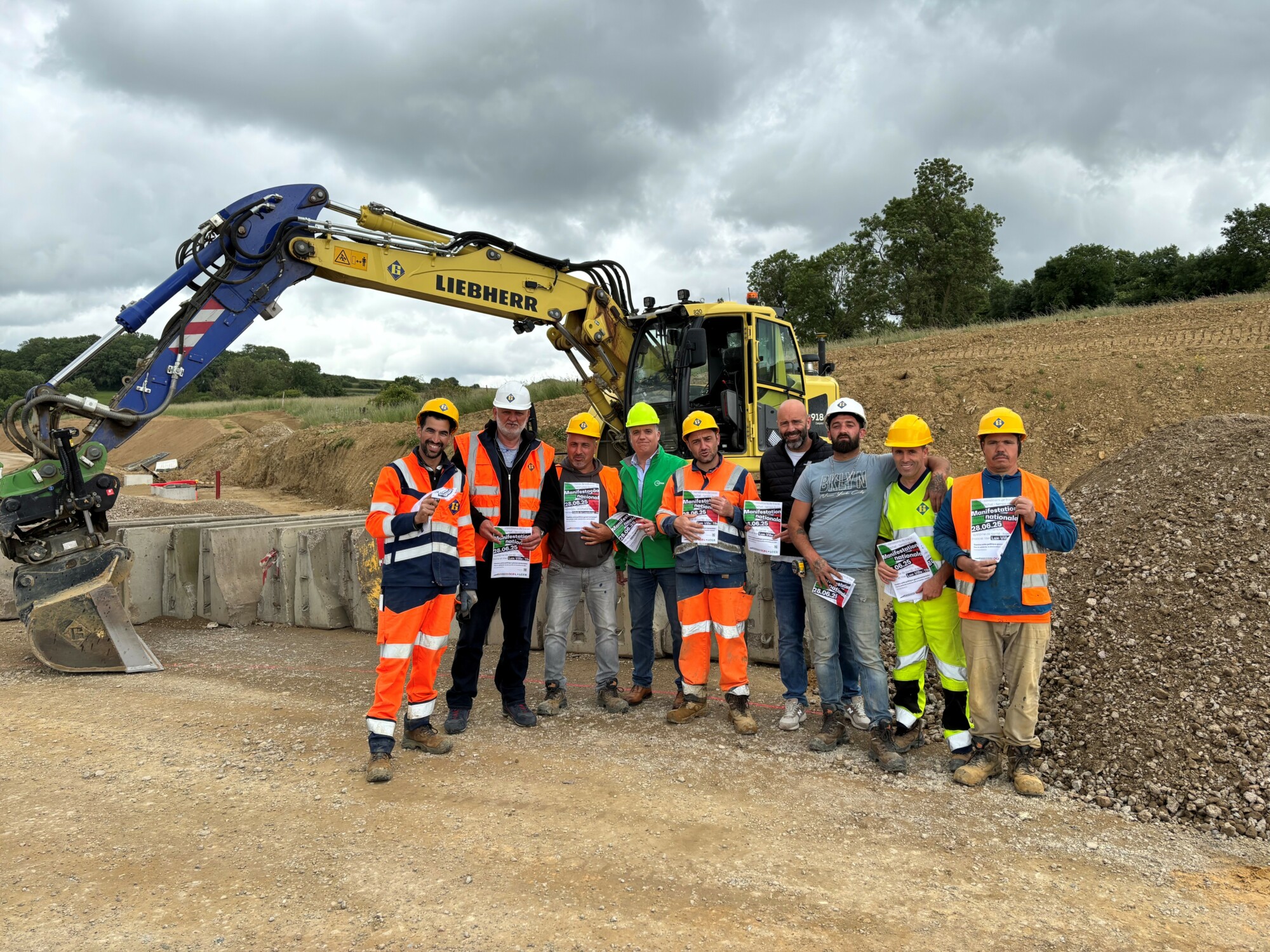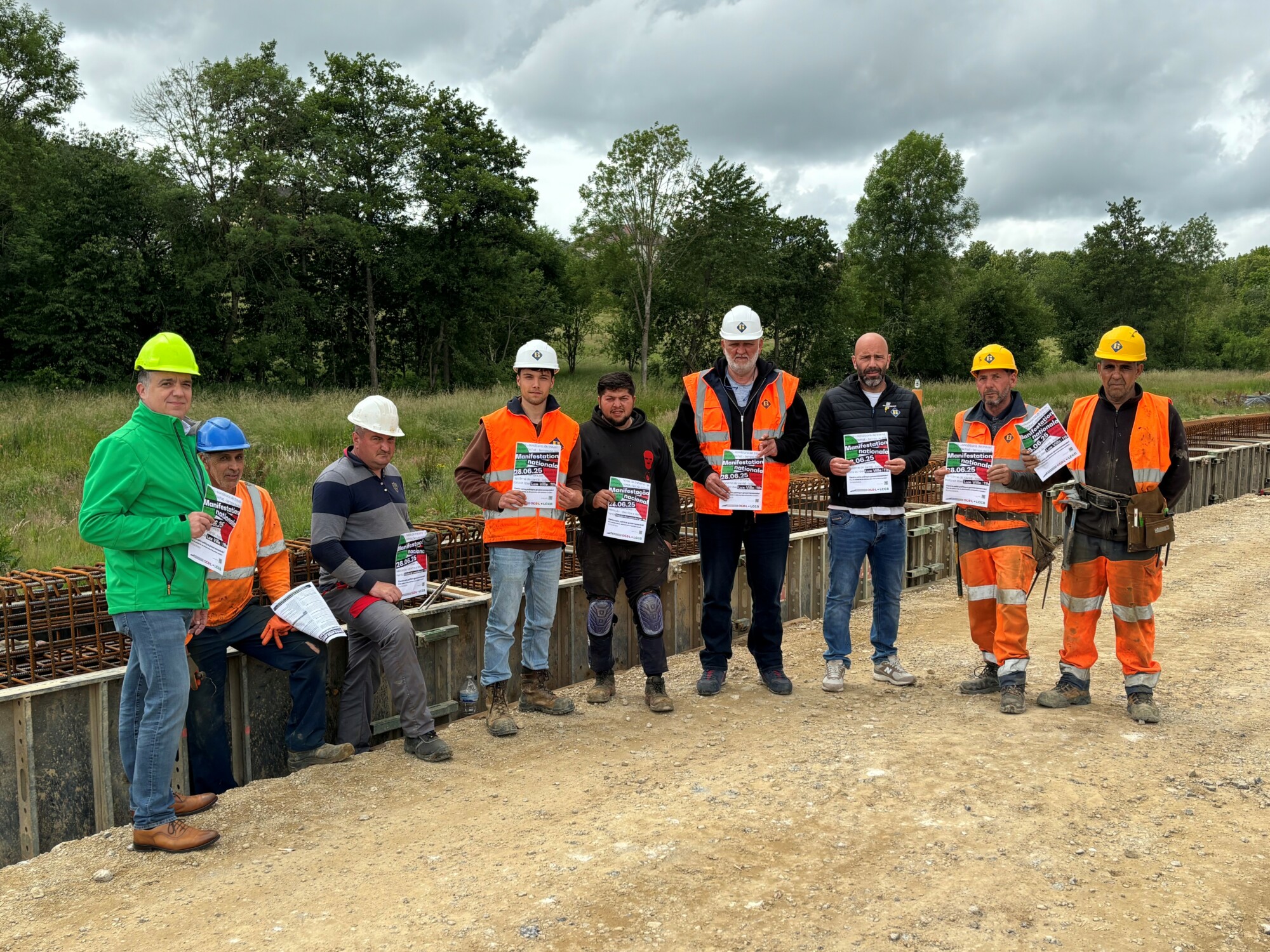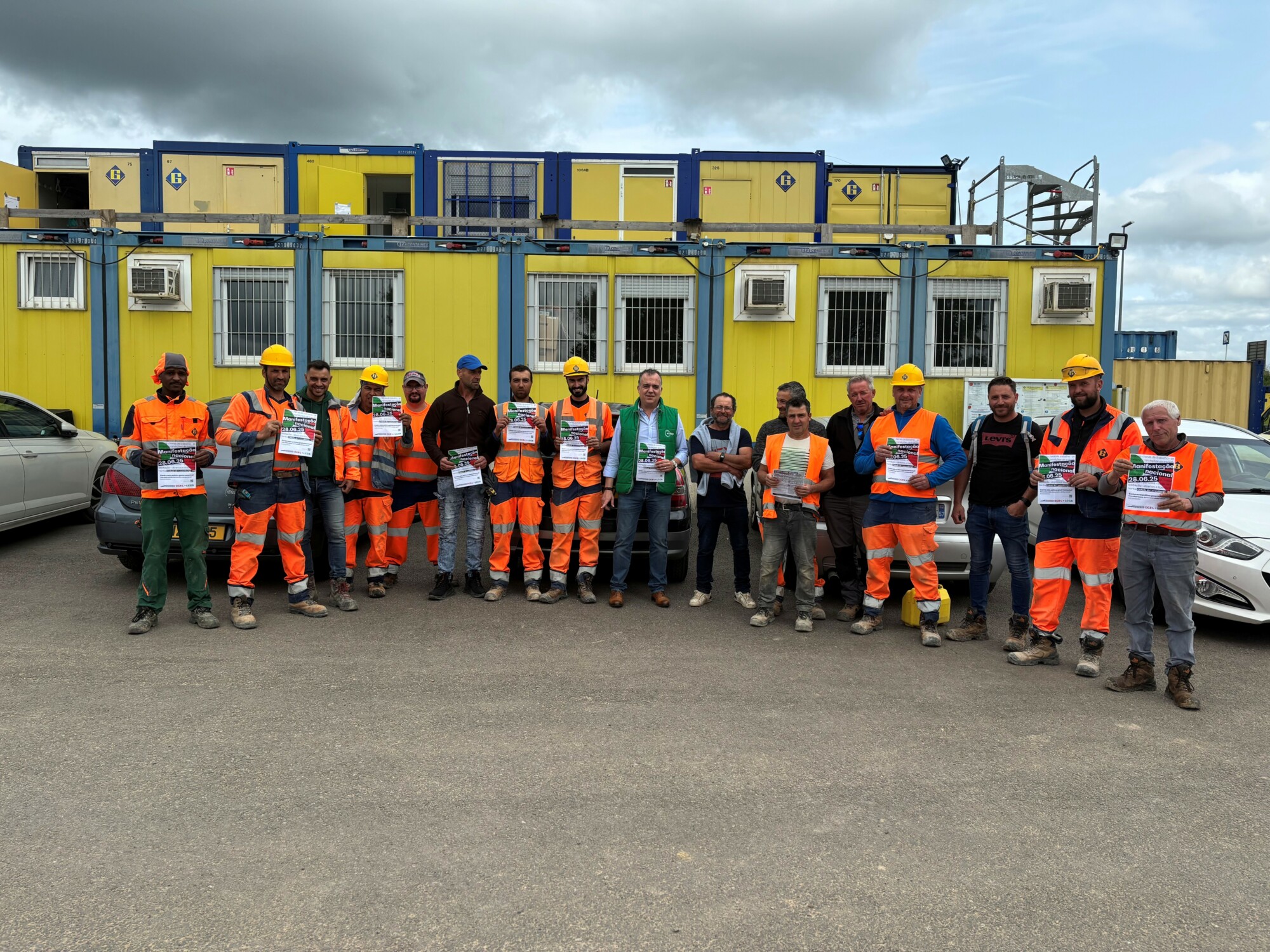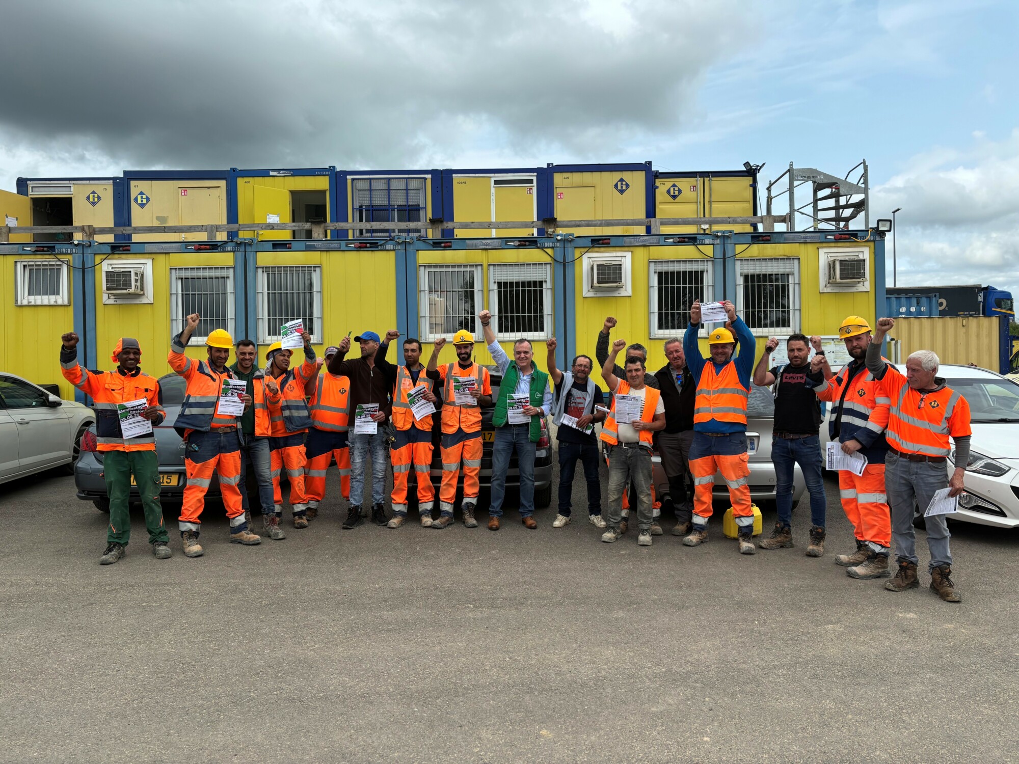Lors d’une action de distribution, les salariés des entreprises de construction Karp-Kneip, Costantini, Skyliners et Félix Giorgetti ont été mobilisés pour la grande manifestation nationale qui se tiendra le 28 juin à Luxembourg-Ville. Les employés ont manifesté leur solidarité dans la lutte pour notre modèle social basé sur la négociation collective et la culture du compromis dans l’intérêt du pays, pour nos salaires et nos conditions de travail, pour un système de sécurité sociale et de pensions solidaire et public.