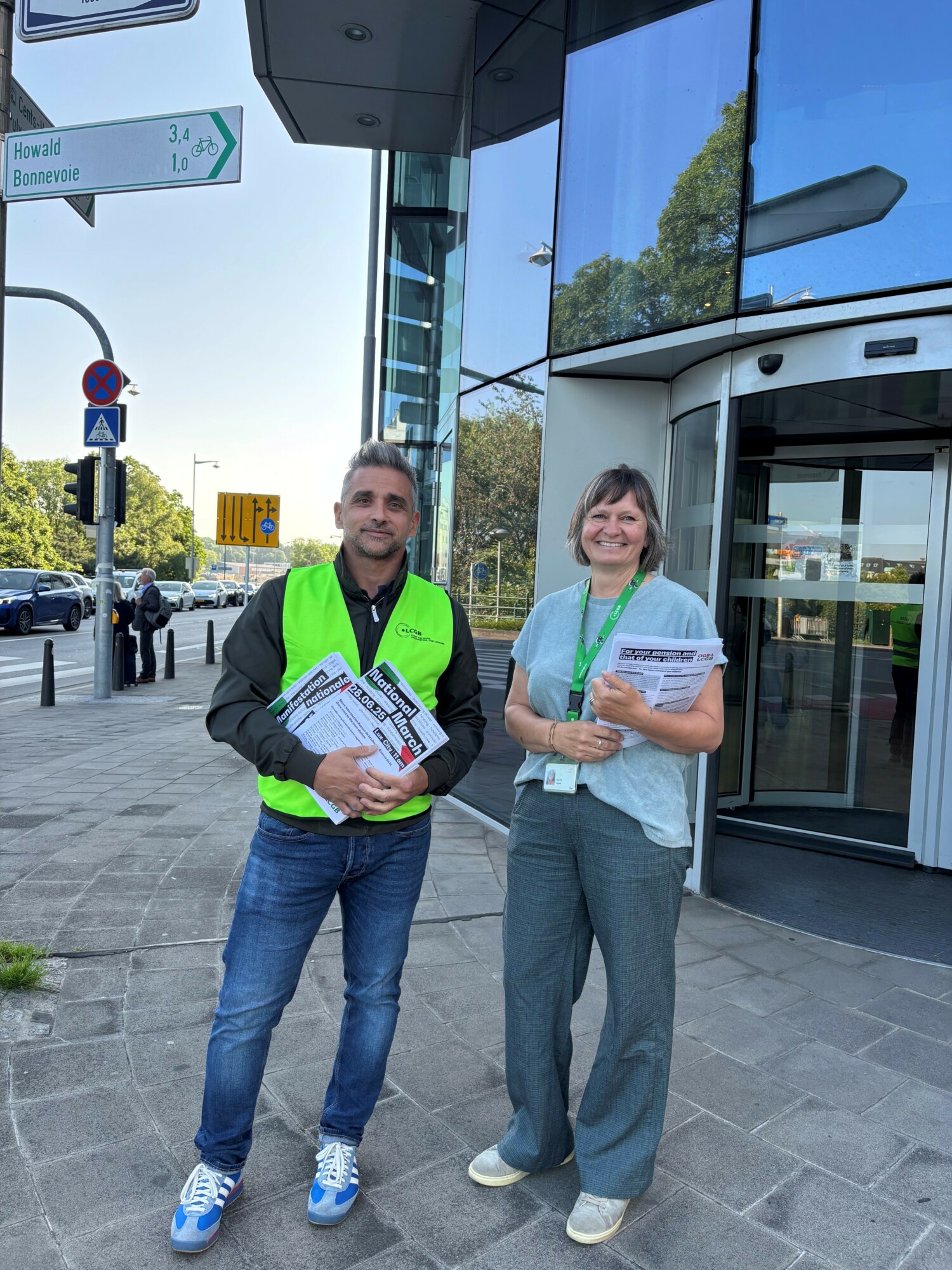 En vue de la grande manifestation nationale du 28 juin, les employés d’ArcelorMittal, Goodyear et Ceratizit ont manifesté leur solidarité pour notre modèle social, pour une société ouverte, solidaire et démocratique, pour l’égalité et la justice sociale ! Dans la rue maintenant. C’est le moment de lutter