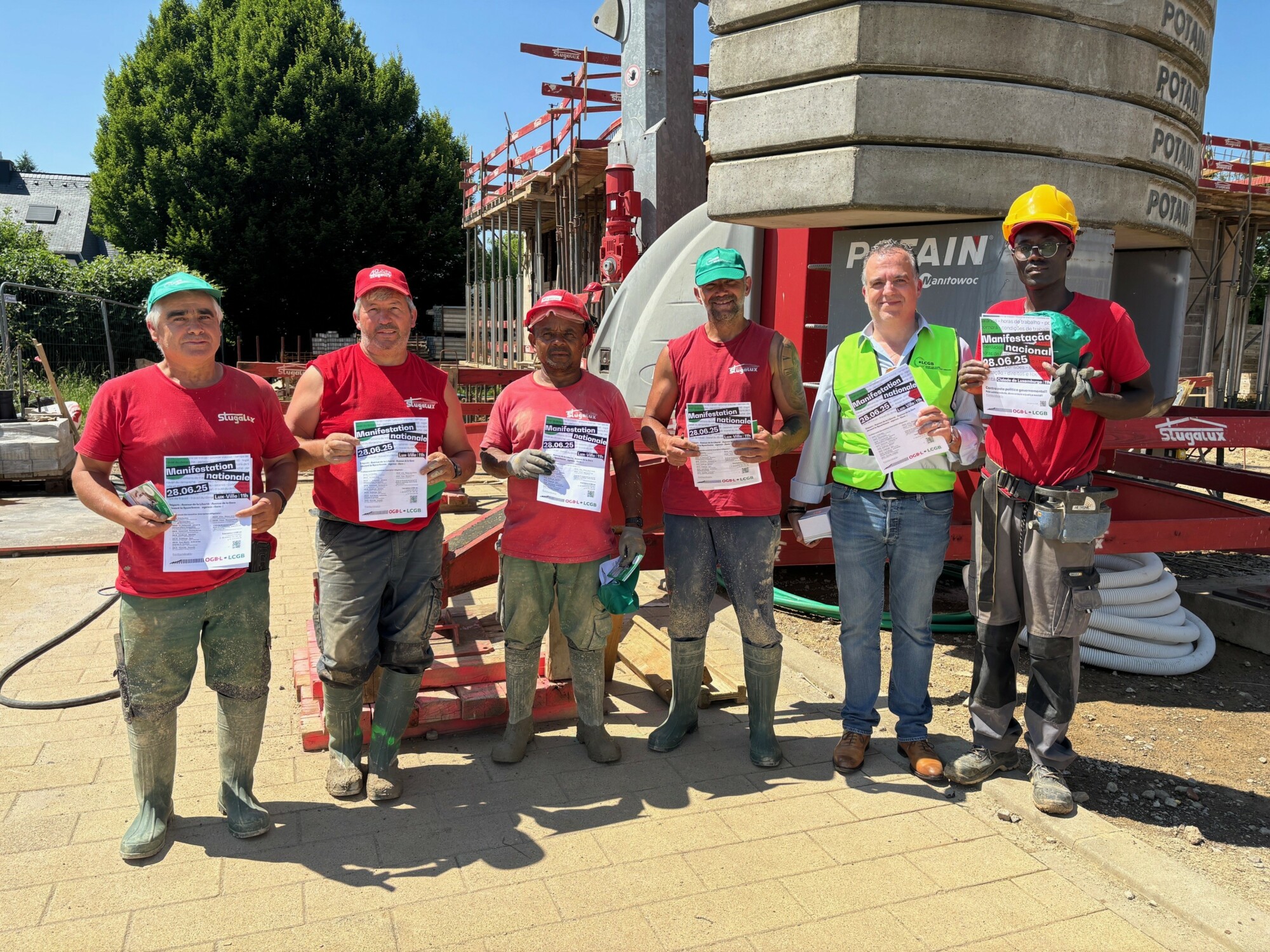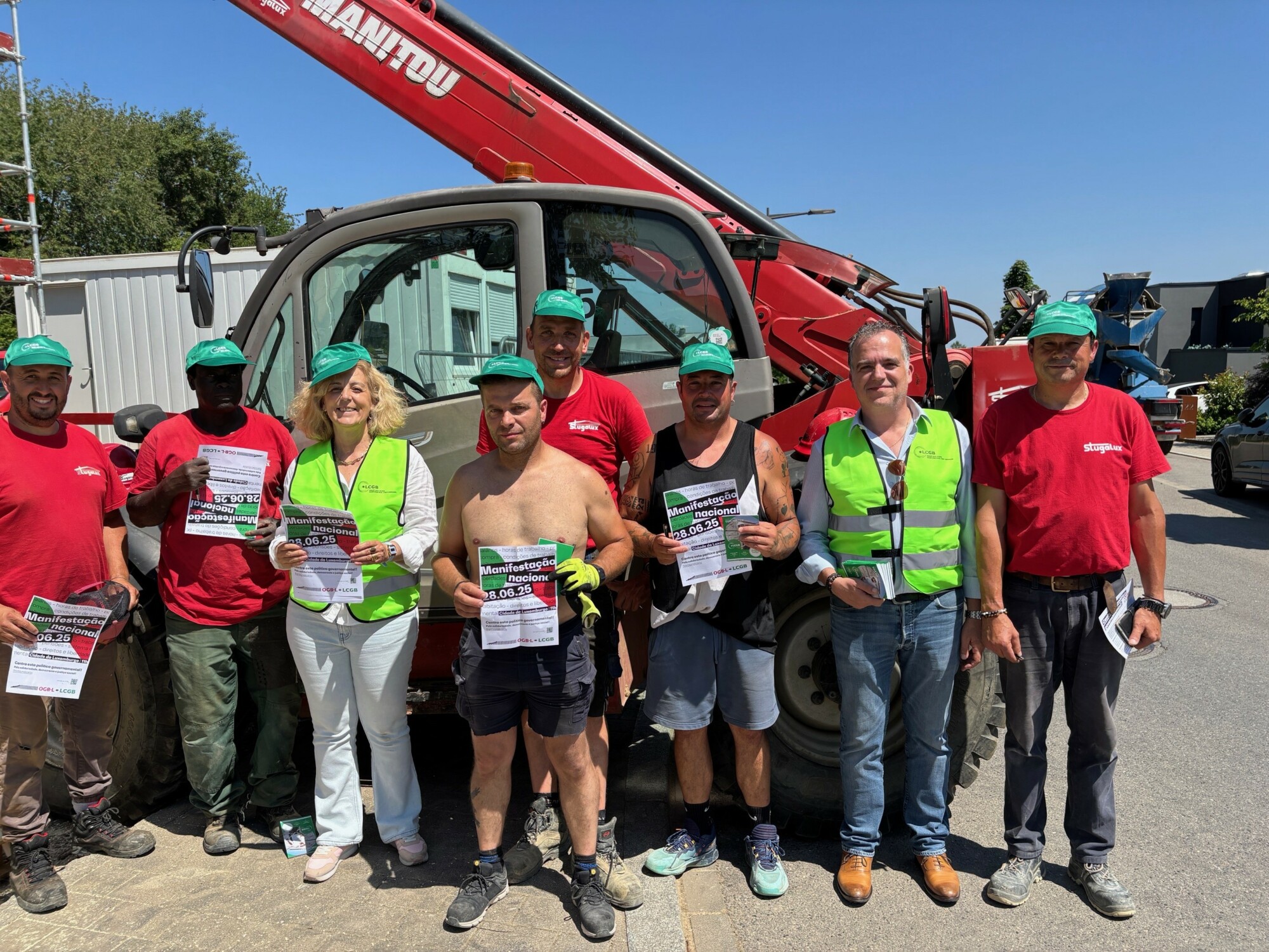 Lors d’une action de distribution, les salariés des entreprises de construction Philippi et Stugalux ont été mobilisés pour la grande manifestation nationale qui se tiendra le 28 juin à Luxembourg-Ville. Les employés ont manifesté leur solidarité dans la lutte pour notre modèle social basé sur la négociation collective et la culture du compromis dans l’intérêt du pays, pour nos salaires et nos conditions de travail, pour un système de sécurité sociale et de pensions solidaire et public.